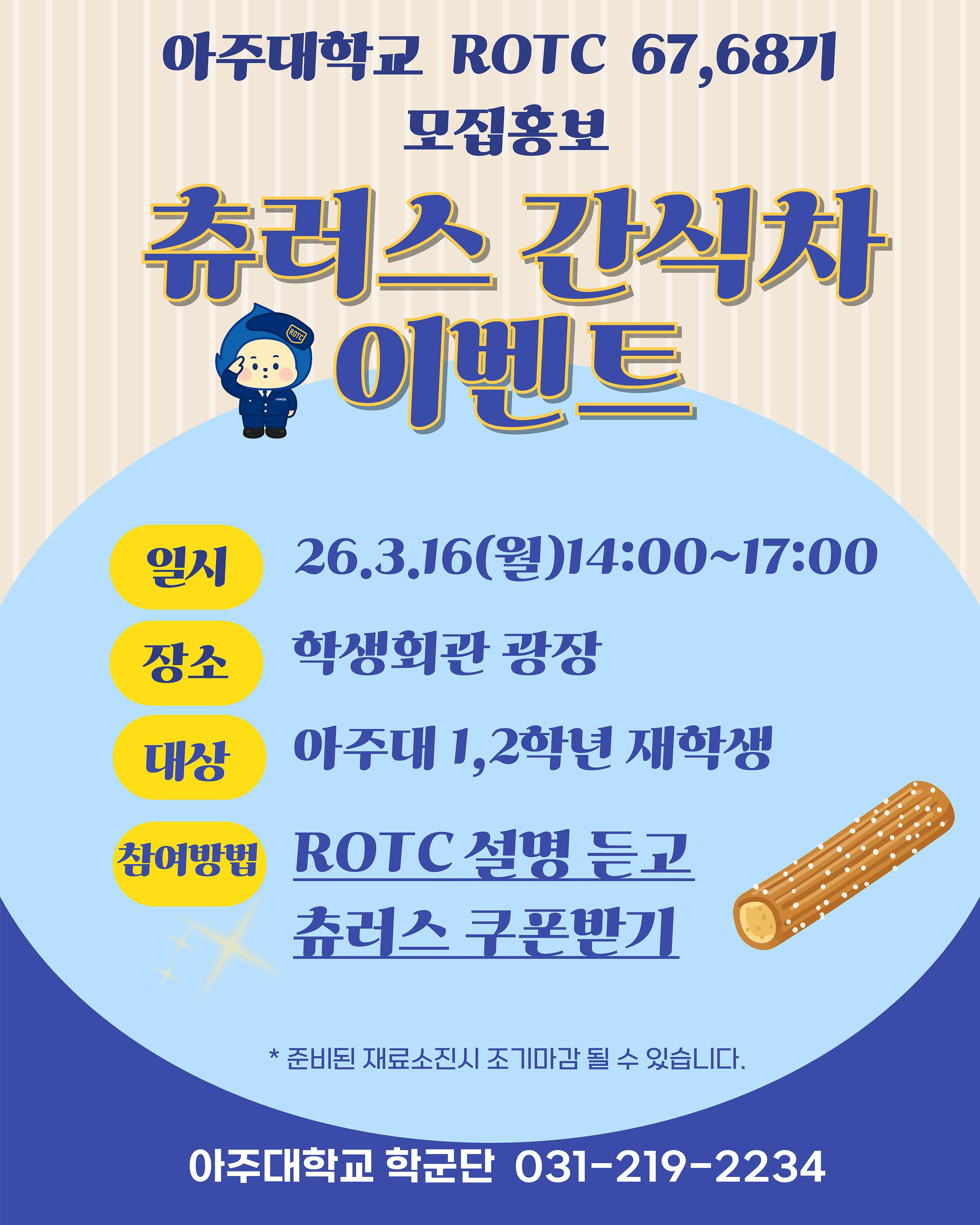 [행사] [학군단]26년 모집홍보 츄러스 이벤트(3.16월14:00~)